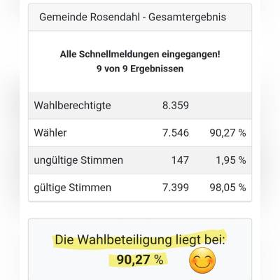 Im Nachgang bedanken wir uns ganz herzlich für die gute Vorbereitung und Abwicklung im Rathaus und ein ganz besonderes DANKESCHÖN gilt den zahlreichen ehrenamtlichen Wahlhelferinnen und Wahlhelfern. Ohne euch wäre nichts gegangen! :-)