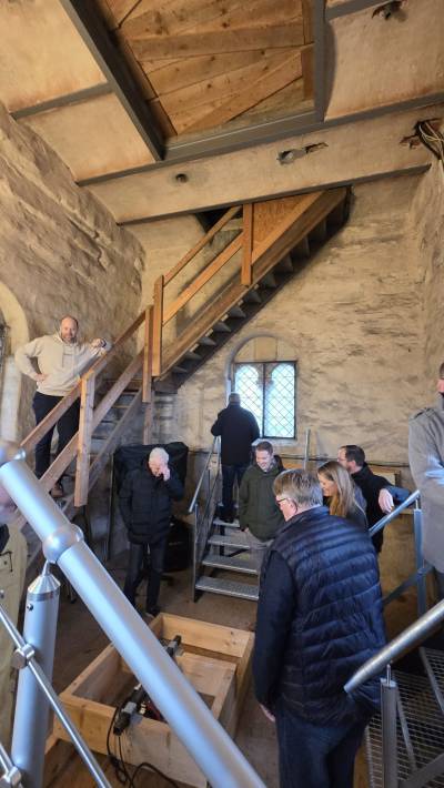 Vor dem Dankeschön-Treffen hatte die Gruppe Gelegenheit das LEADER-Projekt - den neuen Vortragsraum und die Aussichtsplattformen im Osterwicker Kirchturm - und die historische Glockenanlage zu besichtigen. Besonders beeindruckend war der Animationsfilm über die Geschichte der Kirche.